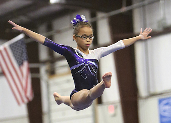 My favorite thing about competing in gymnastics is the adrenaline rush I get when I do really well and when I learn a new skill.