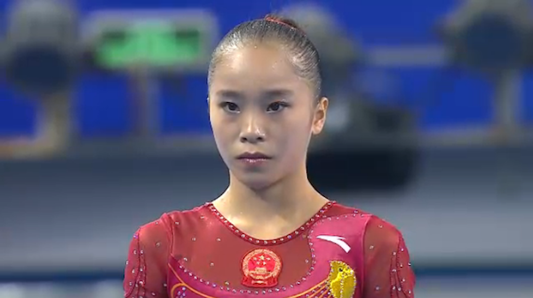 Chen Siyi, dealing with the flu during qualifications and likely still a bit ill, performed a DTY to her knees, unfortunately, bringing in just a 14.166.