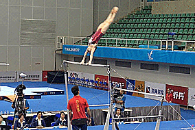 A few others who aren’t as well known compared to their teammates or who are more overshadowed…probably Cheng Shiyi of China, just because she hasn’t made any major teams or competed internationally yet, but she’s fabulous on this event. Yin Sisi is another Chinese bar worker who is always teasing super difficult sets, so I’d give her a look as well. I think Martina Maggio of Italy is pretty overshadowed here, since people tend to consider the Brixia Four better bar workers and think of Martina as stronger on other events but Martina also has a pretty great bars set, Fukasawa Kokoro of Japan is fantastic (she has a Ricna, Pak, Maloney to Bhardwaj, van Leeuwen, stalder half to piked Jaeger, and toe full to full-in, though she can be a bit of a nervous competitor so many of her scores are low), and I also really love Fien Enghels of Belgium, who is a young senior with big skills and a lot of talent here.