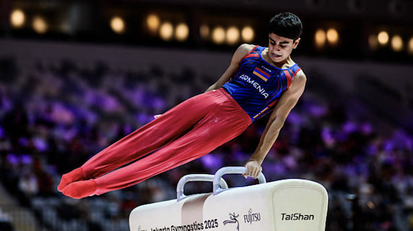10:07 am. Athletes are warming up for pommels!