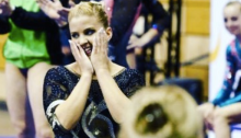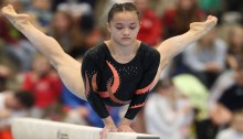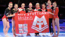 Kim Janas returned to help Stuttgart with a fabulous bars routine at the 2nd Bundesliga meet of the year, her first competition in 18 months.